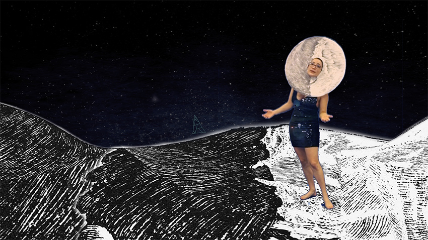 ↑ Freya Pitt, Oh Galileo, My Galileo [animation still], 2017, Moving image, sound and found object installation.